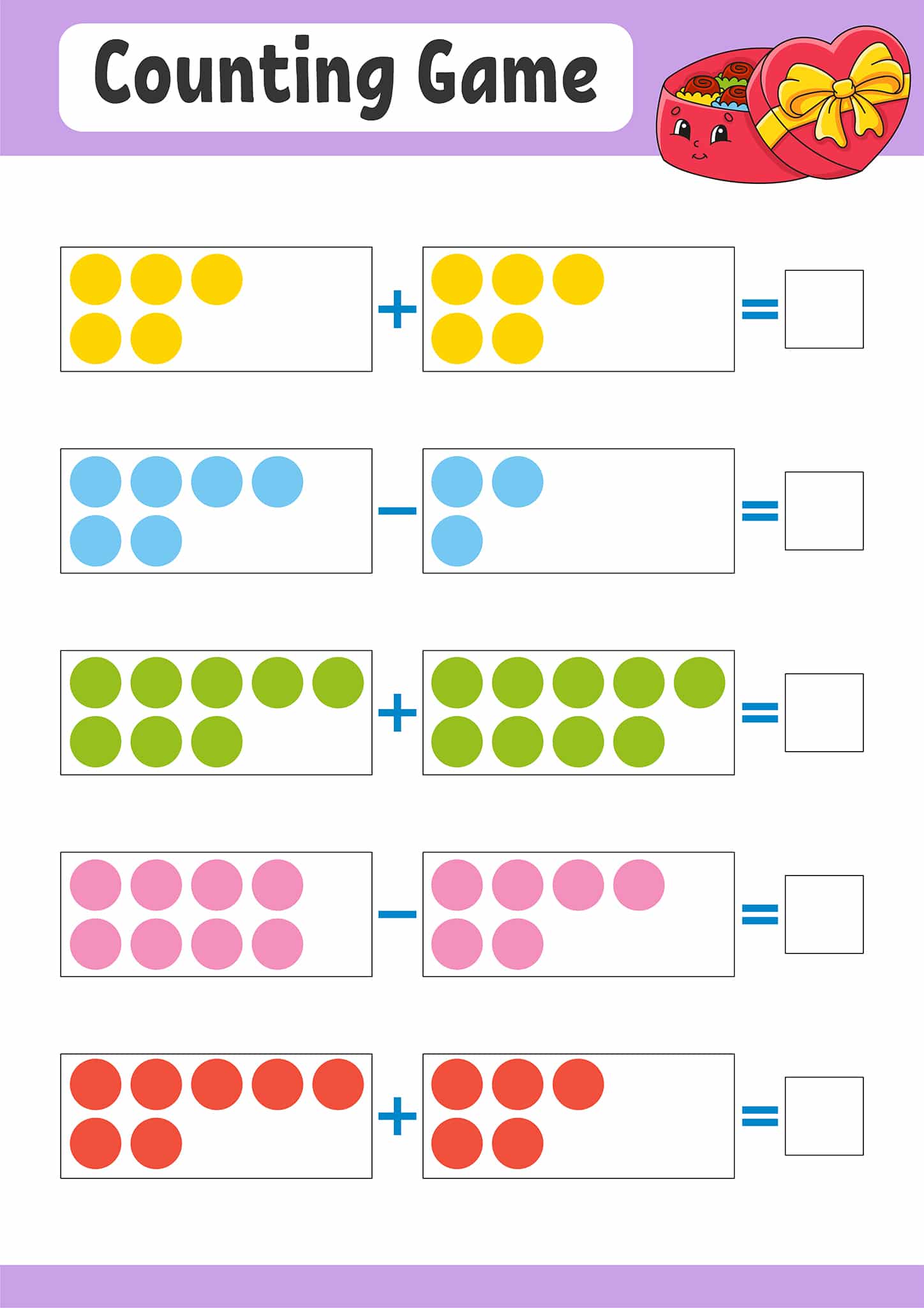 The following kindergarten addition worksheets are suitable for preK, Kindergarten, and First Grade.