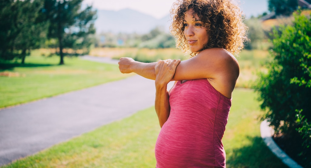 You have the hormone relaxin running through your body, so it’s especially important to stretch before and after a run and to always do a light warm-up.