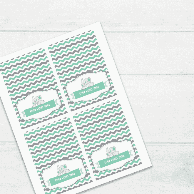 Teal Elephant Theme Food Labels For Party -