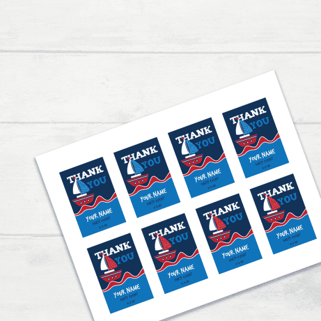 Blue and Red Nautical Baby Shower Thank You Tags -