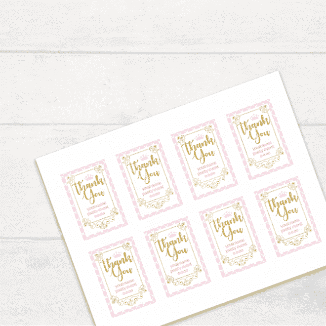 Baby Pink Princess Thank You Tags -