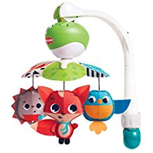As baby is lying on his/her back in the crib, a nursery mobile with dancing figures will improve baby’s attention span and stimulate vision.